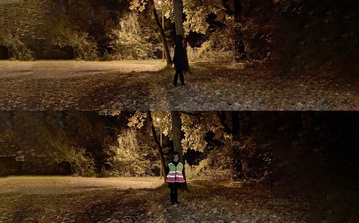 It seems obvious that a high-vest will make you stand out, unfortunately that’s not always the case. A study of the Belgian government in 2019 showed that only 4 out of 56 high-vis vests were in accordance with the safety regulations and after further investigation 43% were withdrawn. A yellow vest isn’t necessarily fluorescent. At Gofluo we always use materials that comply with the European regulations. For kids we suggest checking if it’s CE-marked or has an EN 1150 or EN 20471 norm on the label.