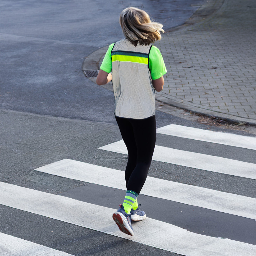 its vibrant fluorescent yellow colour ensures you stand out during the day, while the reflective fabric makes you visible at night.