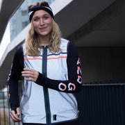 maximise your comfort by adjusting with the two-way zipper. slide the bottom zipper to its centre to create more room around your hips and legs, making pedalling more comfortable.