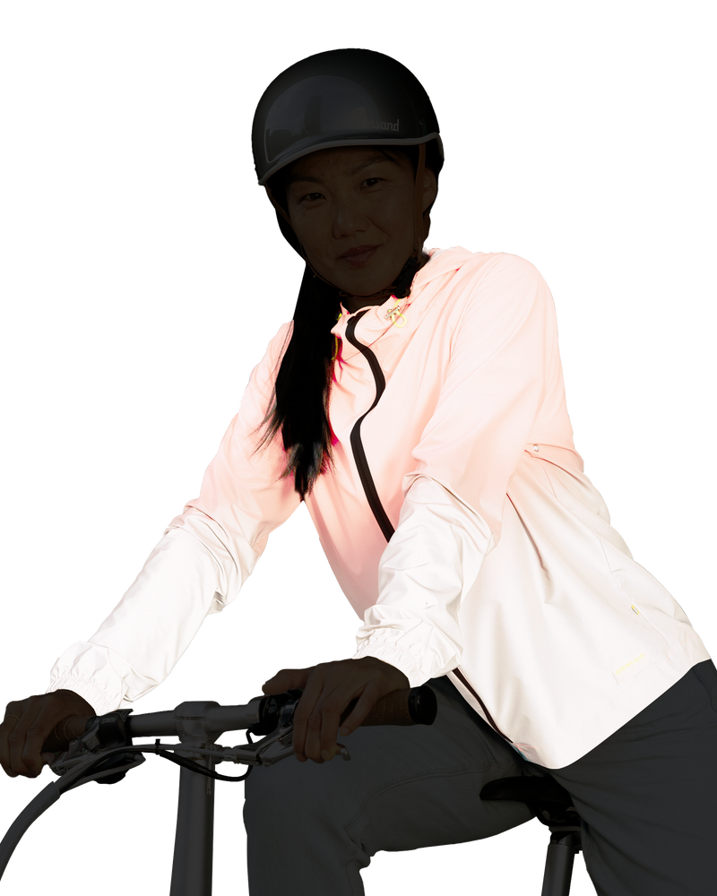 designed for both beauty and comfort, this jacket is perfect for cycling. the long back moves gracefully with your movements and covers your back when leaning forward. you'll find two side seam pockets to keep your phone secure. the elastic hem on the sleeves protects you from cold wind, and the elastic drawstrings in the collar allow you to adjust the hood for a clear view.