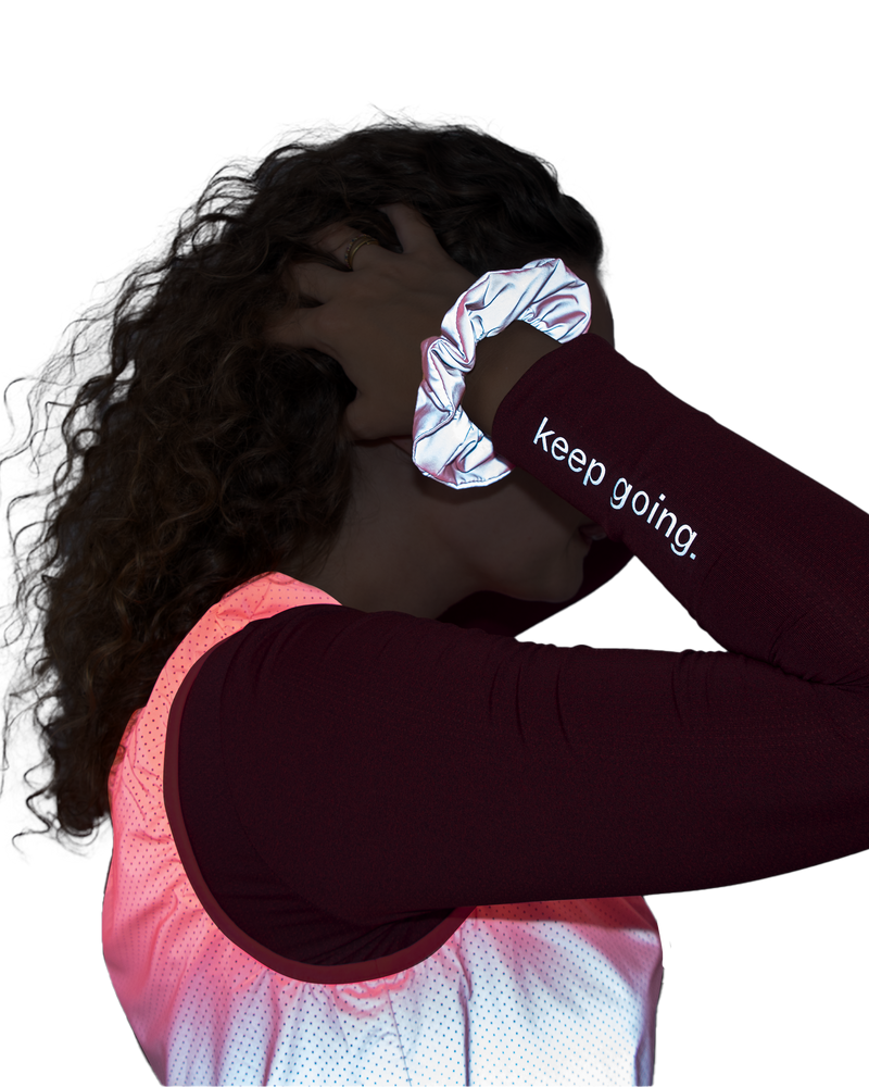 just like our billie jacket and lori bodyglower this scrunchie is fully reflective!