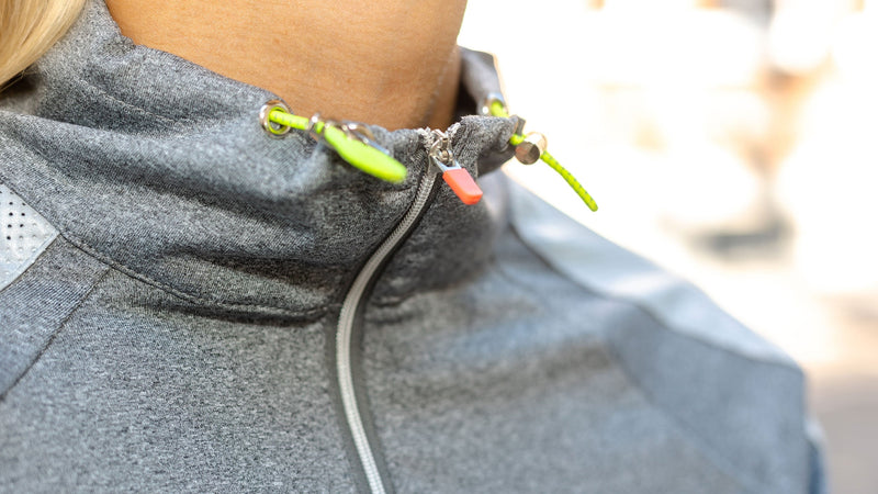 perfect for mid-seasons and soft winters, this long-sleeve top features a collar with an auto-lock sports zipper that stays securely in place during your run. simply lift the pull tab to open the zipper. thumb holes keep layers aligned and warm during your warm-up.