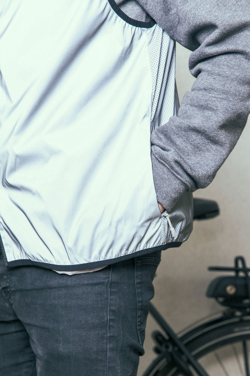 maximise your comfort by adjusting with the two-way zipper. slide the bottom zipper to its centre to create more room around your hips and legs, making pedalling more comfortable.